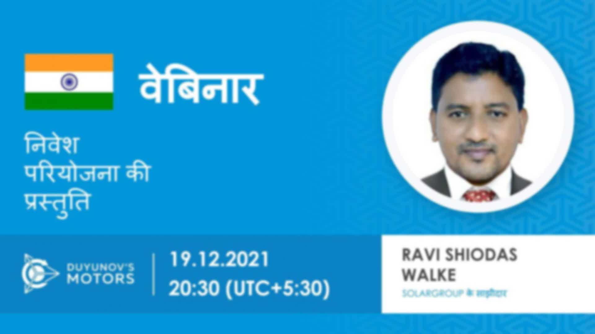 India. निवेश परियोजना "Duyunov की मोटरें" की प्रस्तुति