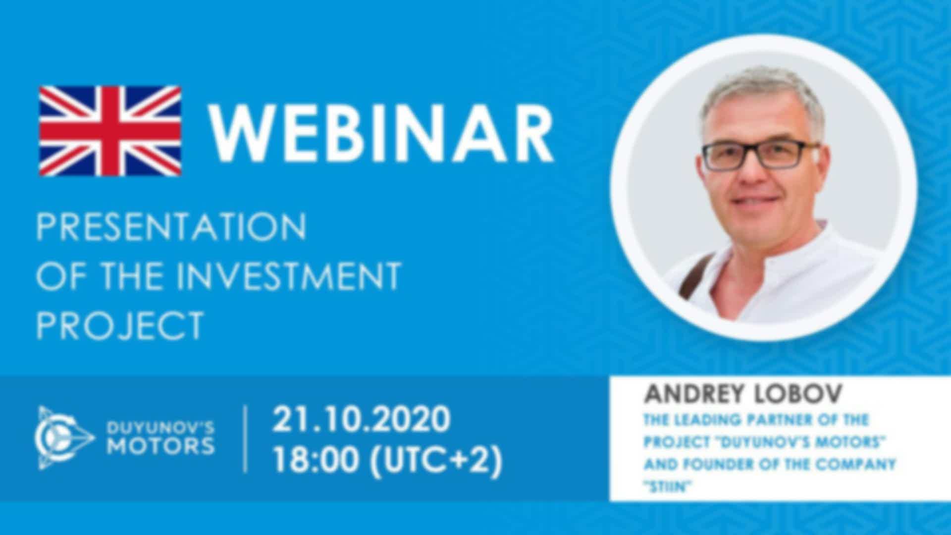 English. Presentation of the investment project "Duyunov's motors"