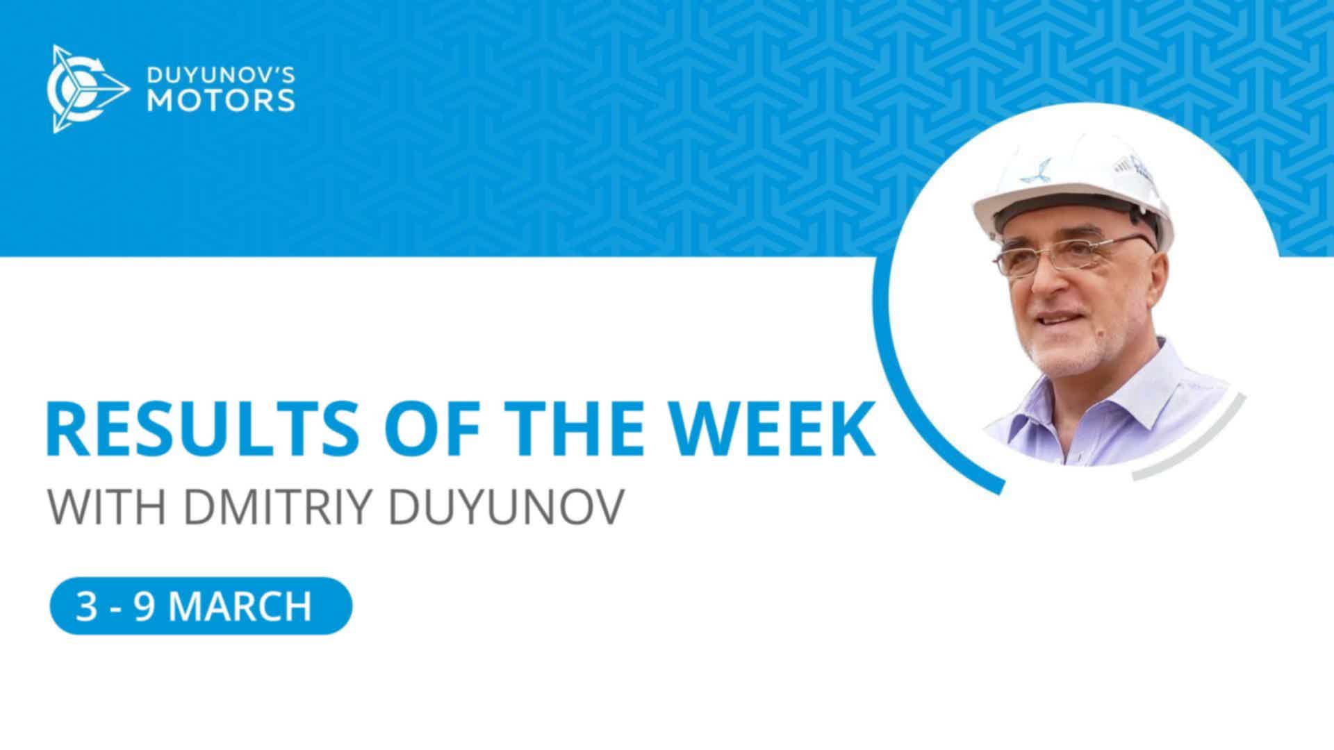 Summary of the week in the "Duyunov's Motors" project