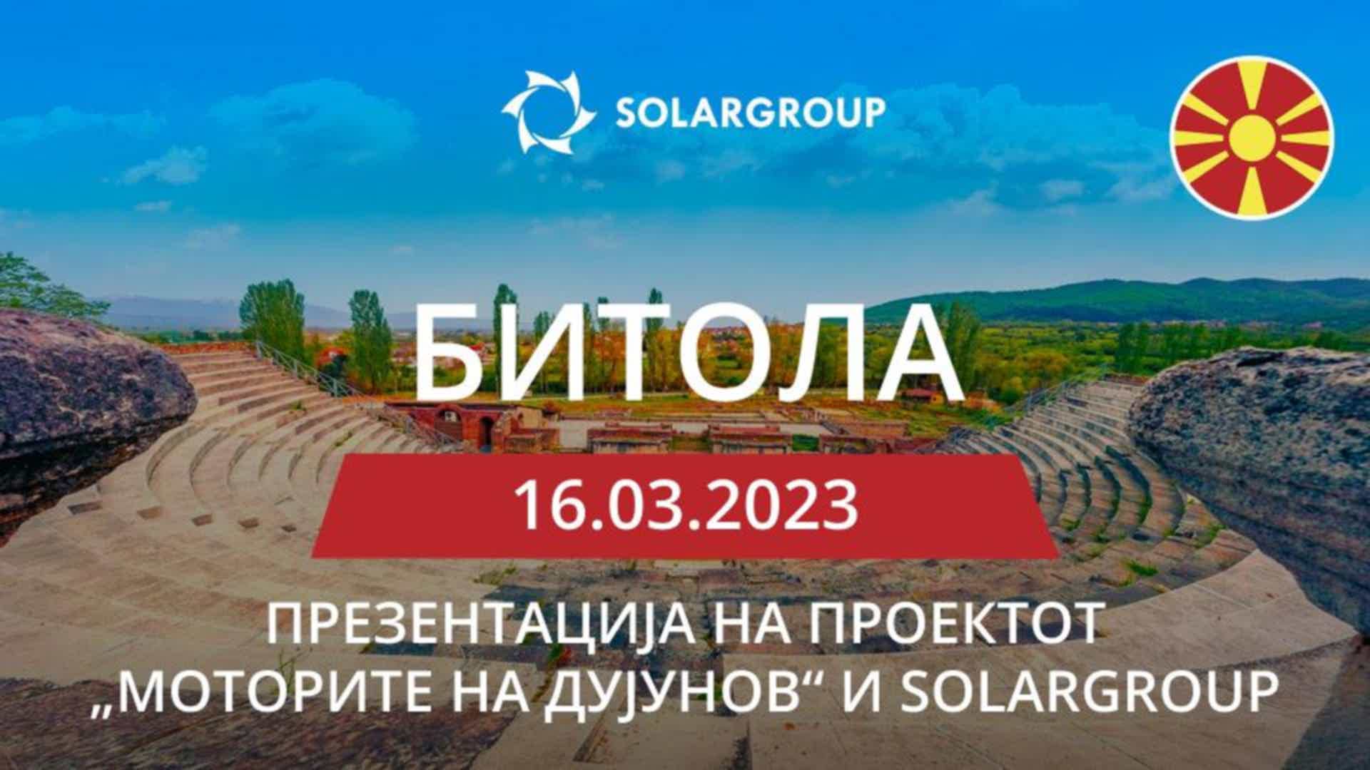 Презентација на проектот „Моторите на Дујунов“ и на компанијата SOLARGROUP во Северна Македонија / Битола