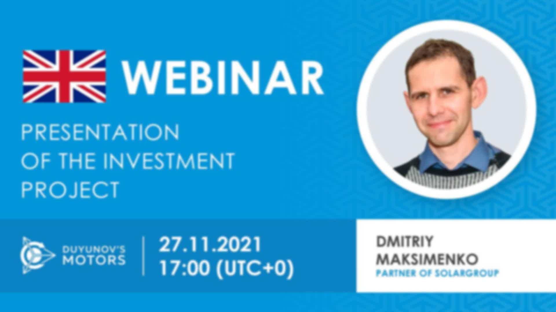 English. Presentation of the investment project "Duyunov's motors"