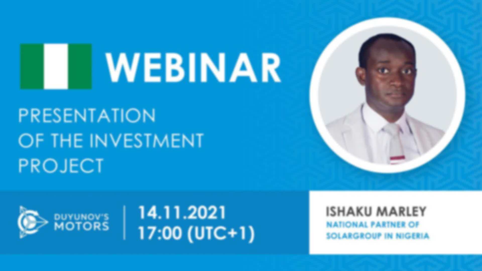 Nigeria. Presentation of the investment project "Duyunov's motors"