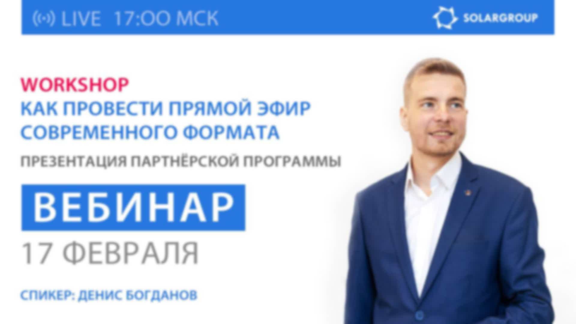 Workshop «Как провести прямой эфир современного формата: хромакей + презентация в Zoom + трансляции на рестриме и во всех соцсетях» / Вебинар для партнёров SOLARGROUP